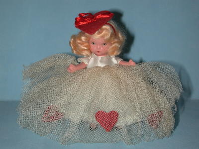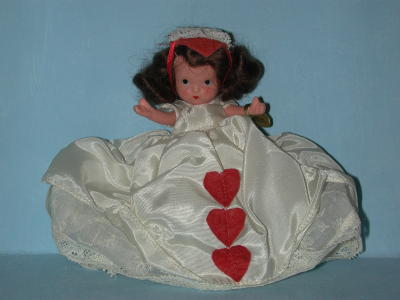 ID Number: 157 Doll Name: Queen of Hearts Series: Storybook Series General Comments: Queen of Hearts is always found in red and white and typically incorporates hearts within her outfit.